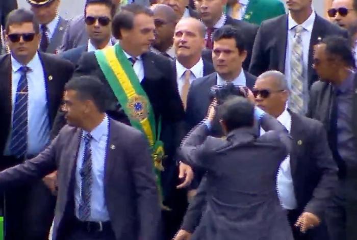 Presidente estava acompanhado de Moro e do ministro-chefe da Casa Civil, Onyx Lorenzoni