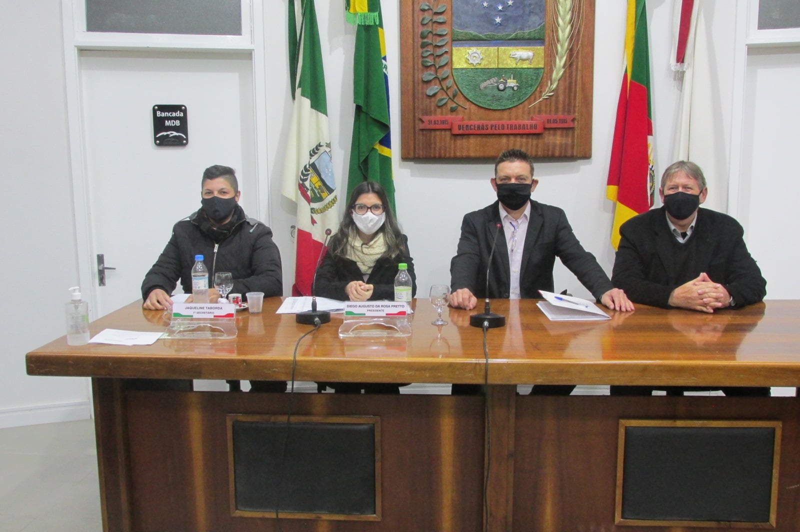 No final da Sessão Ordinária desta segunda-feira dia 30 de junho foi eleita a nova Mesa Diretora para o Segundo semestre de 2020 que ficou assim constituída: Presidente – Valdecir Cardoso (Progressista)- Vice-Presidente Moacir Tramontini (PTB) 1ª Secretária Jaqueline Taborda (PSDB) 2ª Secretária Andresa de Souza Yê. O propósito foi de constituir uma direção Pluripartidária para terminar esta Legislatura.