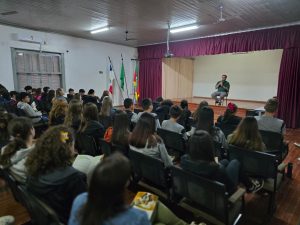 As escolas contempladas foram EMEF Pinheiros, EMEF Odilo Afonso Thomas, EMEF Leo Joas, Escola Estadual de Educação Básica Vidal de Negreiros e EEEF Moinhos. A palestra ocorreu na manhã desta quarta-feira (29), no auditório da Escola Estadual Vidal de Negreiros e reuniu mais de 100 estudantes e educadores.