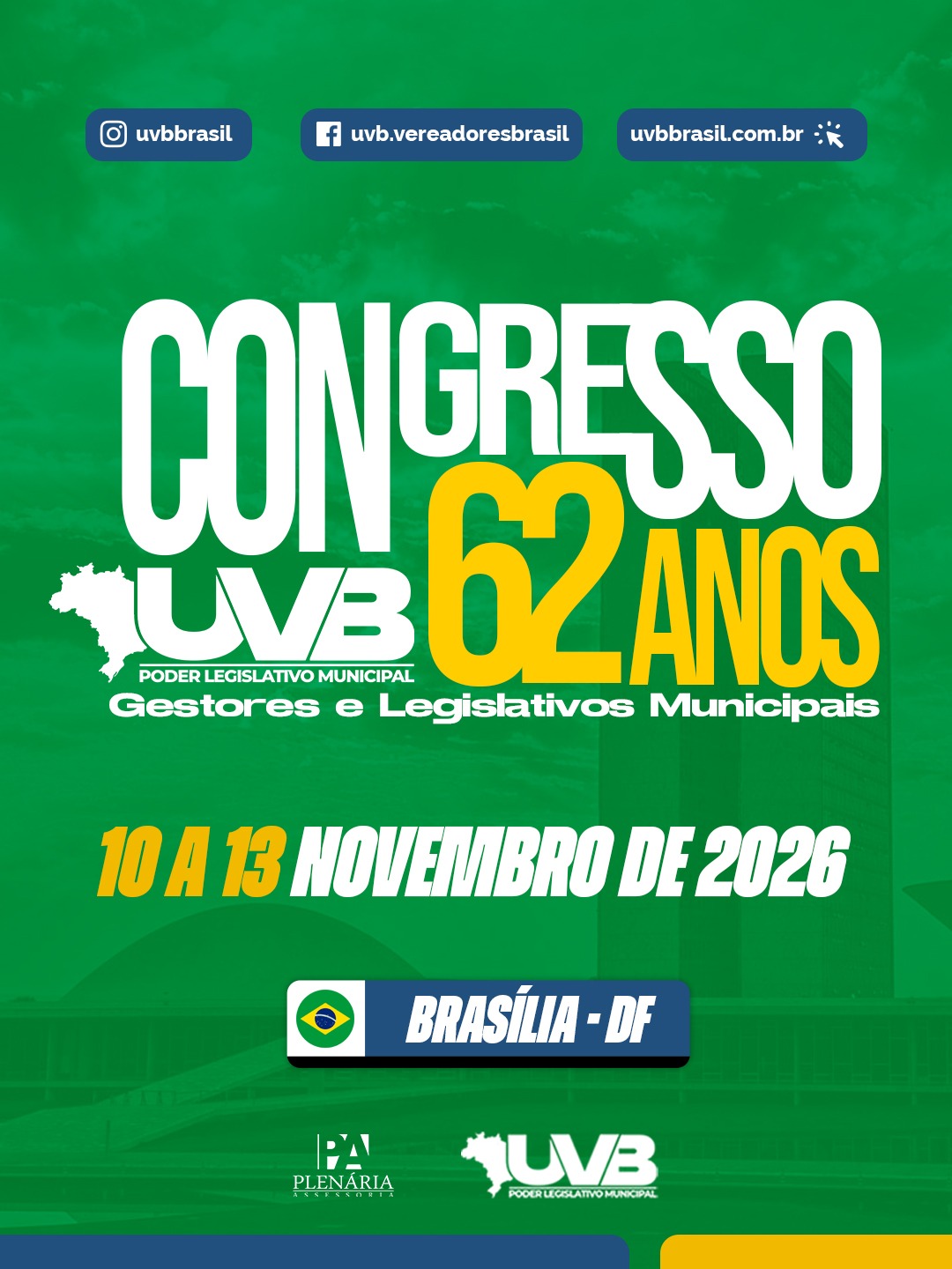 EVENTOS Congresso UVB 62 anos de Gestores e Legislativos Municipais em Brasília/DF de 10 a 13 de novembro 22/12/2025 Nenhum comentário