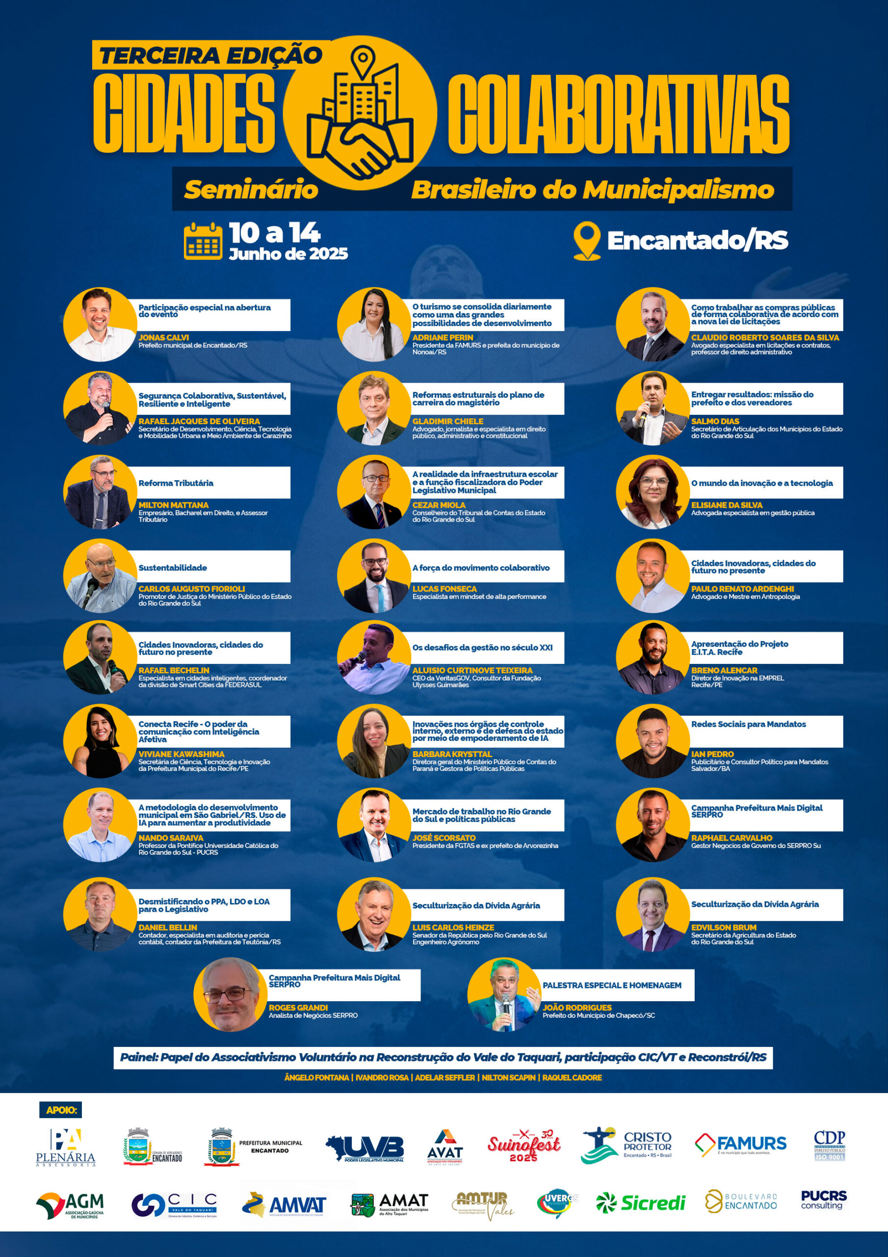 Aproveitamos divulgar e valorizar o município parceiro, Encantado a terra do Cristo Protetor, oportunidade em que recebe vereadores, vereadoras, servidores de Câmaras Municipais de todos os Estados da Federação. Em paralelo a programação do evento acontece a SUINOFEST, um evento realizado pela ACI-E, por adesão, que fortalece a economia regional com a produção de suínos. Encantado no passado foi conhecida como a Capital do Ouro Branco, pelos seus frigoríficos e produção de banha.