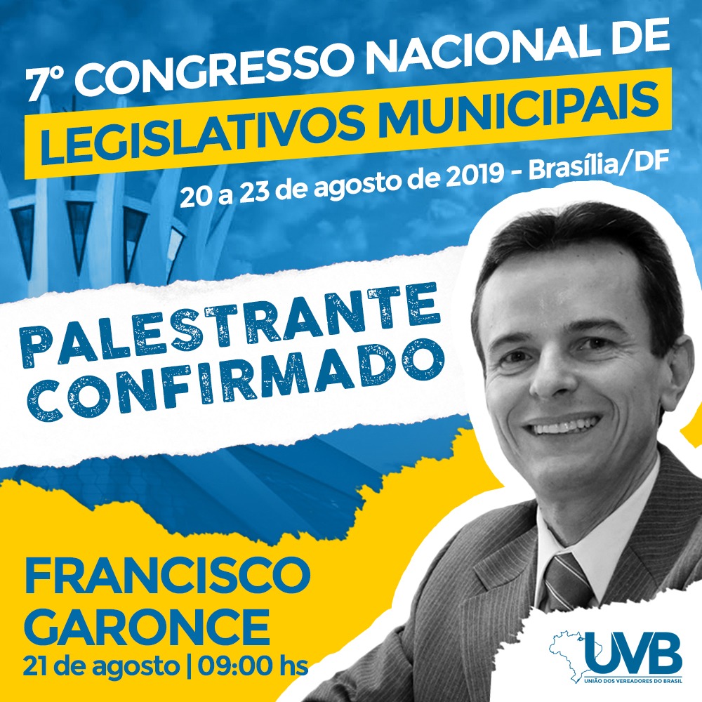 Garonce confirmou sua presença como palestrante no 7o Congresso Nacional de Legislativos Municipais, quando apresentará o painel “Educação para o Trânsito, Mobilidade e a Câmara Municipal”, na manhã do dia 21 de agosto, em Brasília. Esta é uma grande oportunidade de discutir os caminhos legais e práticos para promover segurança viária na sua cidade, sem impactar o orçamento municipal, e criando a base para uma segurança viária de verdade, que salva vidas e economiza recursos que hoje são drenados para o tratamento de vítimas do trânsito.