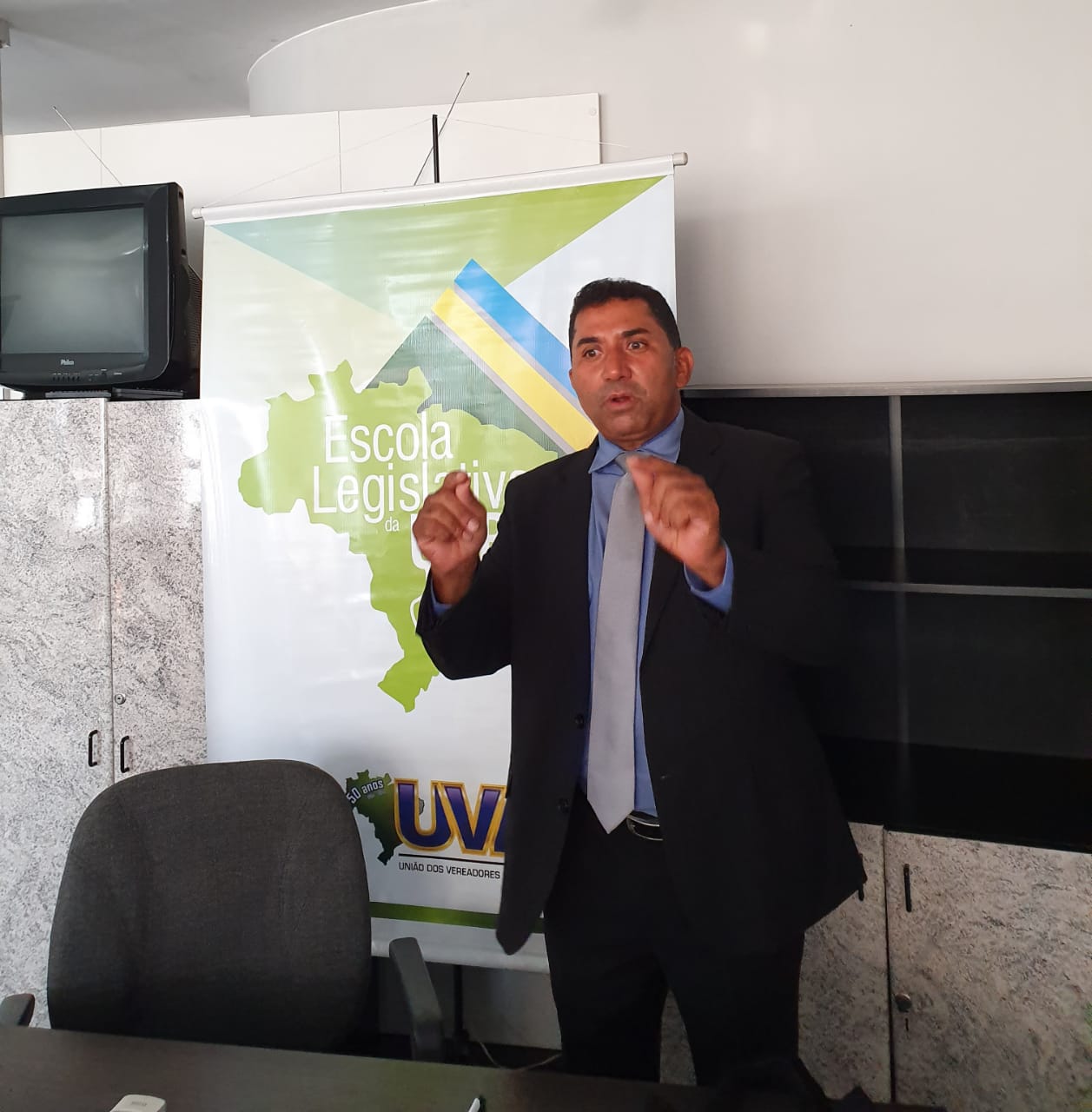 Brasília/DF – No Curso de Formação e Cidadania que acontece na sede da UVB, o vereador Asaf Sobrinho que é Presidente da União de Vereadores e Câmaras do Maranhão-UVCM, abordou um tema de grande importância e que gera dúvidas na sociedade sobre a real função das câmaras municipais e principalmente, a do vereador. Asaf citou as funções da câmara municipal, e destacou a importância do papel da função julgadora na tarefa de aprovar ou rejeitar o parecer prévio do Tribunal de Contas Estaduais sobre as contas do prefeito e de sua própria mesa. Já nas infrações político-administrativas, deve ser julgado pela Câmara Municipal, na forma e pelos fatos a serem expressos na Lei Orgânica do Município (é o mesmo que acontece com os deputados federais e senadores que cometem as infrações político-administrativas capazes de levar à perda do mandato. São as mesmas da Constituição Federal). Destacando-se a infração, as proibições, o procedimento declarado incompatível com o parlamentar, falou o vereador Asaf.