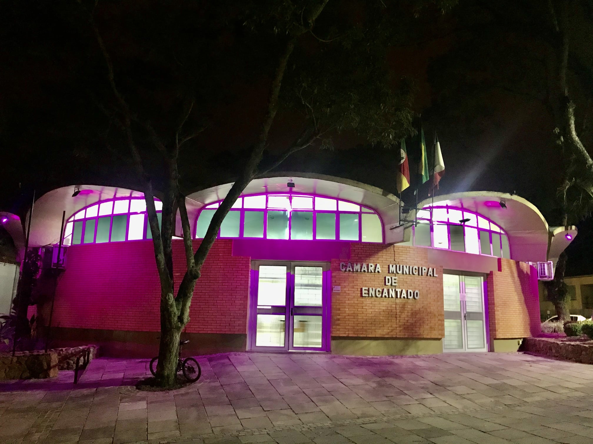 O prédio da Câmara de Vereadores de Encantado está com a iluminação externa Roxa, aderindo à campanha Máscara ROXA que permite que mulheres denunciem casos de violência em Farmácias. A iniciativa foi lançada pelo Comitê Gaúcho Impulsor Eles por Elas, ligado a ONU Mulheres e conta com o apoio de órgãos da segurança e do judiciário. A Coordenadora executiva do comitê, Karen Lose destaca que, apesar dos diferentes números de telefone para denunciar casos de violência contra a mulher, muitas não conseguem ficar tempo suficiente longe dos agressores neste período de pandemia, o que impede as ligações.