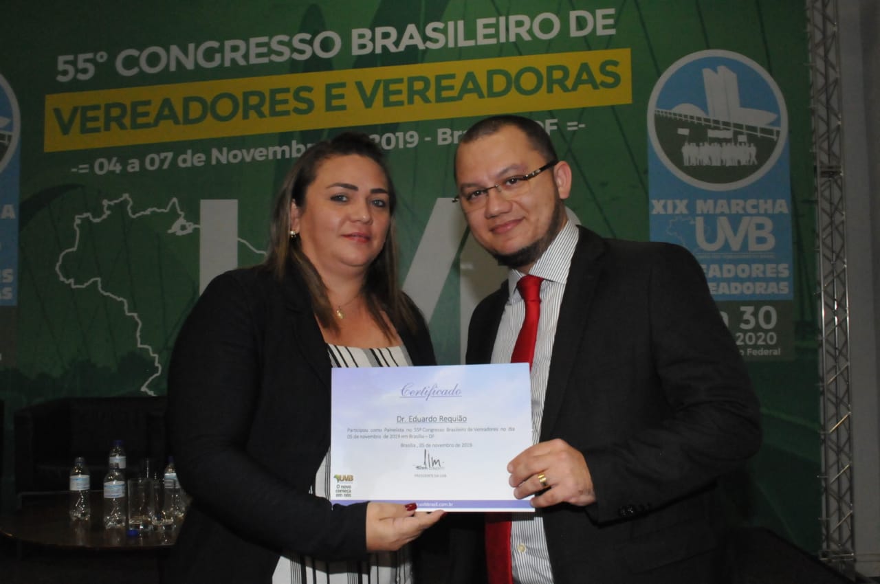 O Dr. Eduardo Requião, que além de Advogado, é Secretário Geral da OAB Subseção de Camaçari-BA, Professor de Direito em cursos preparatórios e Instituições de Pós-Graduação, Assessor Jurídico de Direito Público e Consultor da UVB, bem como de diversas entidades Estaduais apresentou ao publico presente a palestra sobre o Estatuto do Vereador, tema este que agradou os participantes que interagiram bastante durante toda a exposição, ao ponto de invadir o inicio da noite para que fosse realizada a conclusão do trabalho.