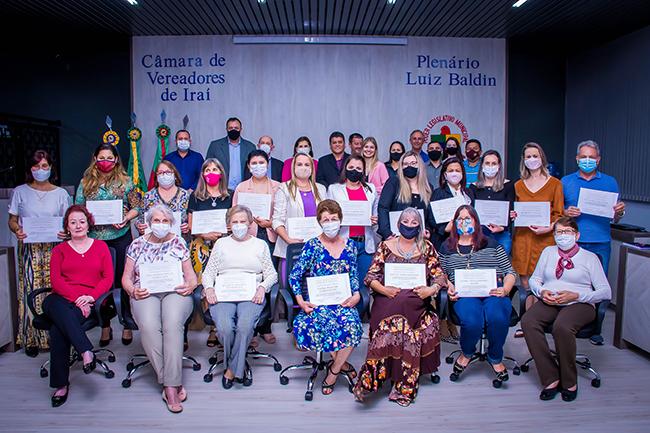 Em comemoração ao Dia do Professor, celebrado no dia 15 de outubro, o Poder Legislativo, realizou na última sexta-feira, duas sessões, sendo uma ordinária para aprovação de projetos e após sessão solene em homenagem aos professores da rede de ensino de Iraí.