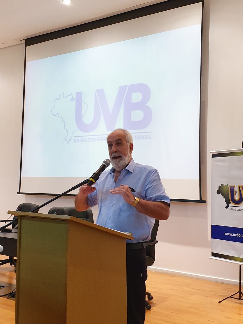 O desembargador aposentado do TJ-RS, Genaro José Baroni Borges, compartilhou experiências no final da manhã de hoje com os participantes do Encontro Nacional de Agentes Políticos pelo Fortalecimento da Cidadania Democrática. O evento está sendo promovido pela União dos Vereadores do Brasil em parceria com a União dos Vereadores do Brasil.