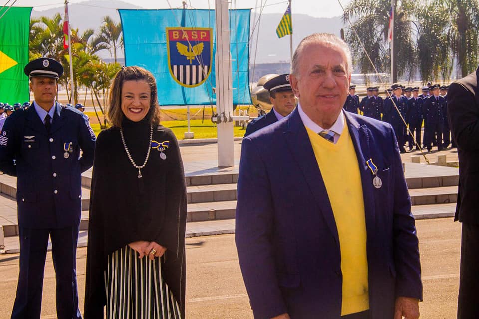 Em nome da entidade, o presidente da Uvesp, Sebastião Misiara e a diretora Silvia Melo, receberam a mais alta homenagem da Força Aérea Brasileira – a MEDALHA SANTOS DUMOND, símbolo do homem que acreditou no que pensaram ser impossível e conseguiu unir o mundo.