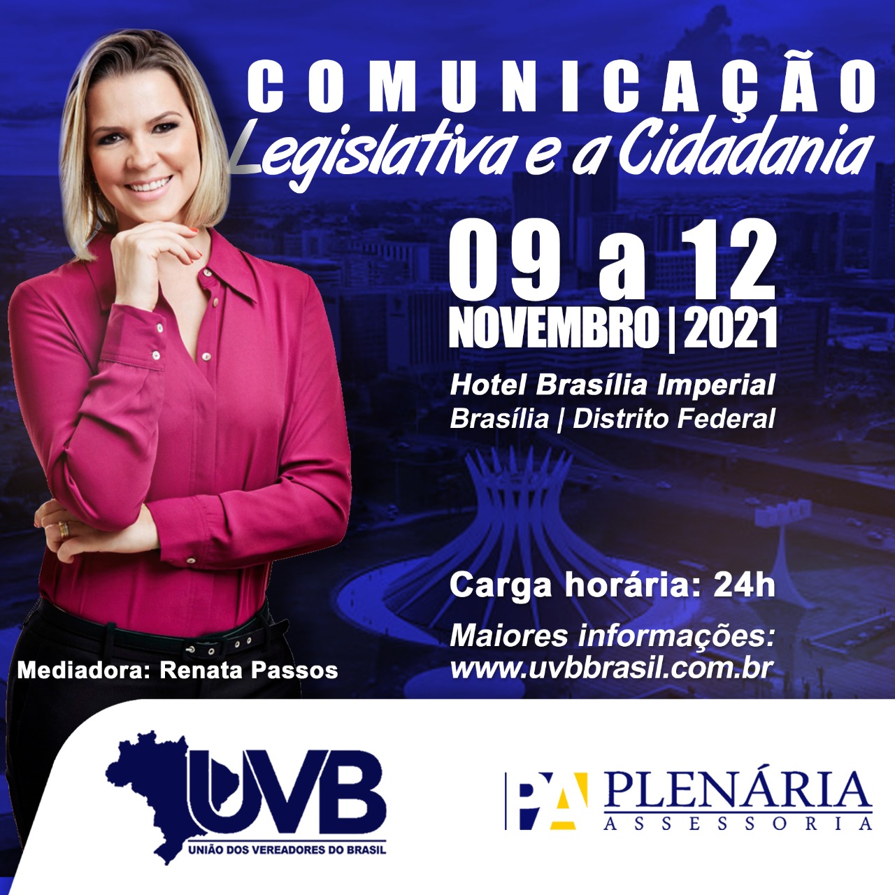 A União dos Vereadores do Brasil/UVB, com a organização e realização da Plenária Assessoria, promove capacitação legislativa com foco na comunicação aos vereadores e vereadoras do Brasil. A mediação será da jornalista e mestranda em Estudos