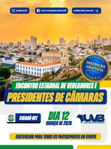 A União dos Vereadores do Brasil realizará no próximo dia 12 de março, em Cuiabá, o Encontro Estadual de Vereadores e Presidentes de Câmara da UVB no Mato Grosso, reunindo lideranças do legislativo municipal para um momento de diálogo, capacitação e fortalecimento institucional.